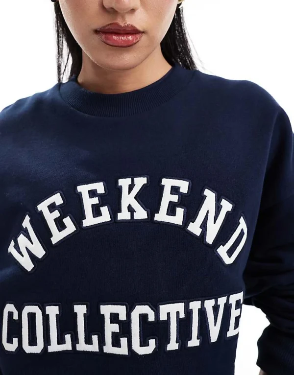 ASOS WEEKEND COLLECTIVE Weekend Collective Co-ord Oversized Sweatshirt With Logo In Navy For Women