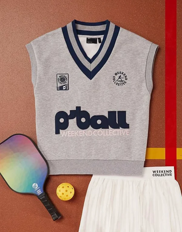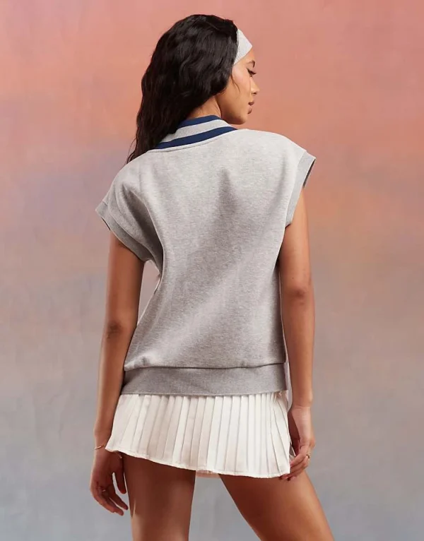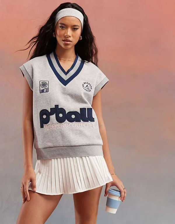 ASOS WEEKEND COLLECTIVE Weekend Collective V Neck Sleeveless Heavyweight Jersey Sweatshirt With Graphic In Grey Marl For Women