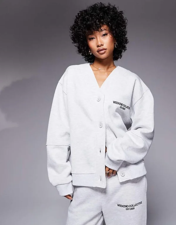 ASOS WEEKEND COLLECTIVE Weekend Collective Co-ord Heavyweight Cardigan With Logo Embroidery In Ice Marl For Women