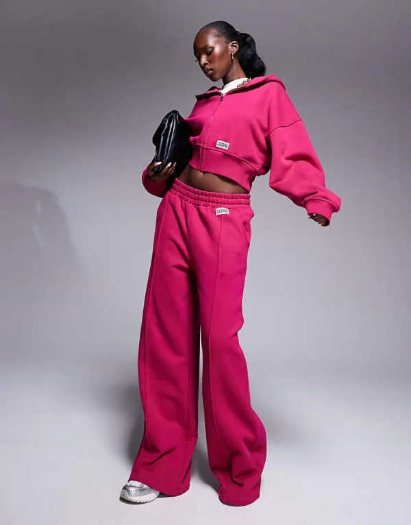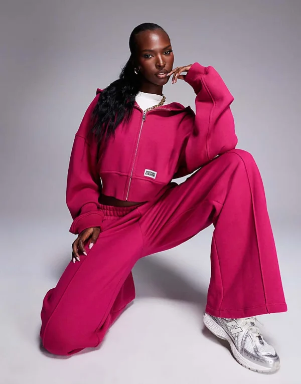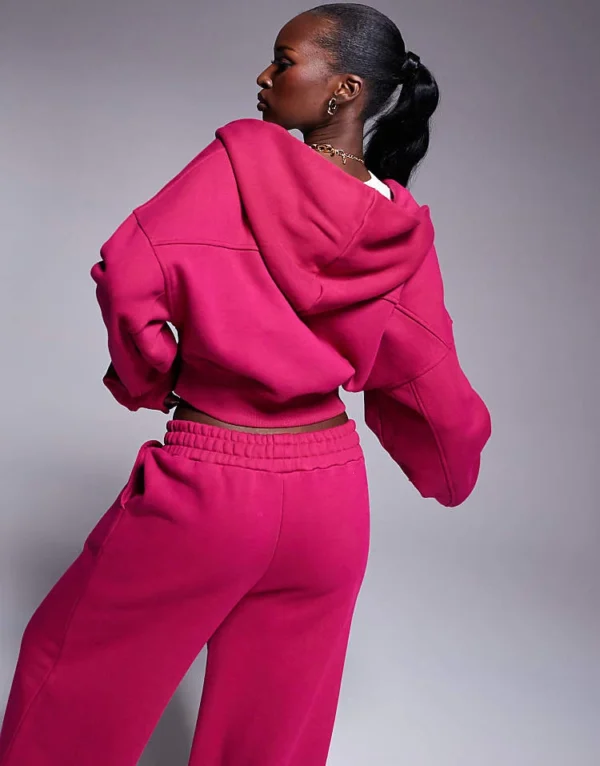 ASOS WEEKEND COLLECTIVE Weekend Collective Co-ord Heavyweight Zip Through Hoodie With Woven Label In Burgundy Pink For Women