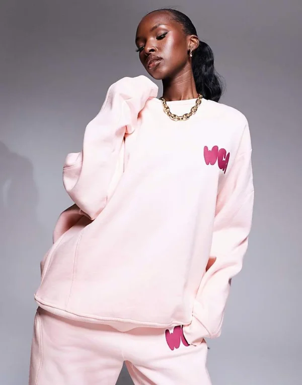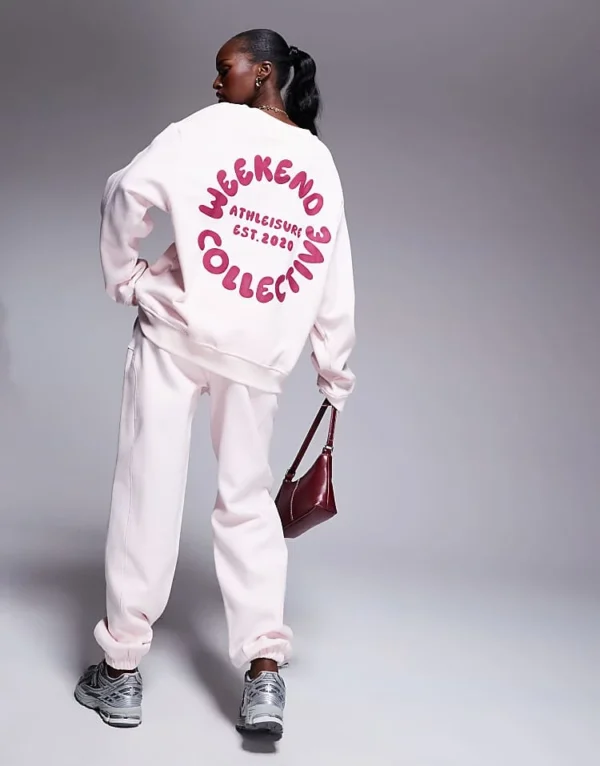 ASOS WEEKEND COLLECTIVE Weekend Collective Co-ord Bubble Circle Graphic Seamed Sweatshirt In Pink For Women