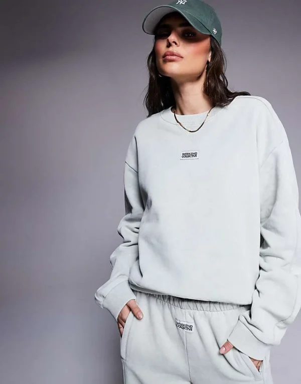 ASOS WEEKEND COLLECTIVE Weekend Collective Co-ord Seamed Sweatshirt In Washed Sage Green For Women