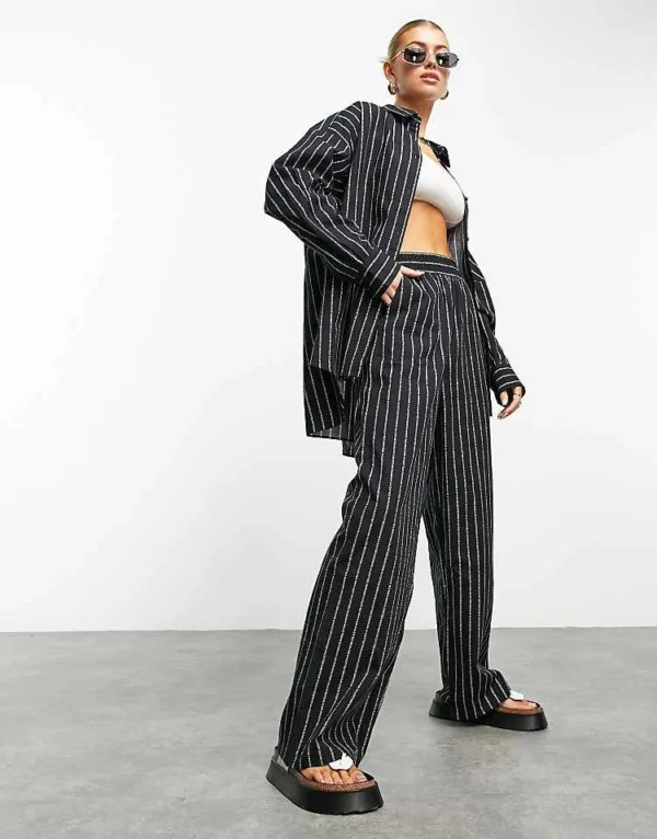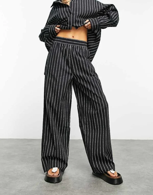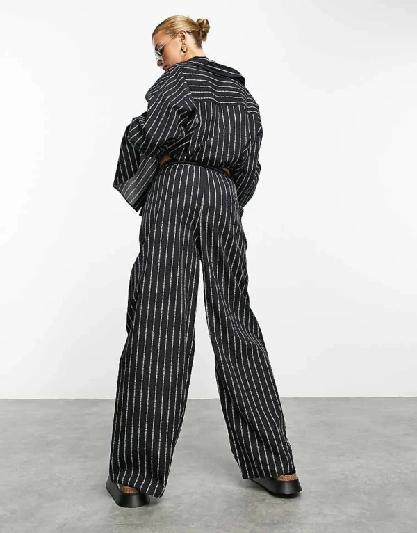 ASOS Weekend Collective Pinstripe Wide Leg Trouser In Black For Women