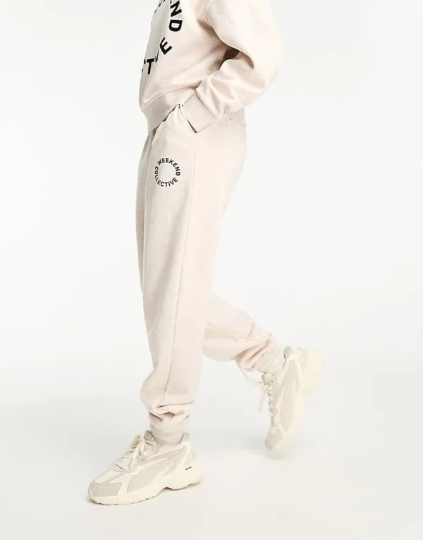 ASOS Weekend Collective Co-ord Oversized Jogger With Black Logo In Oatmeal Marl For Women