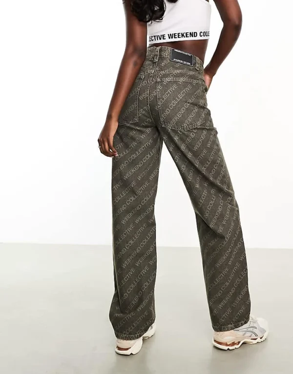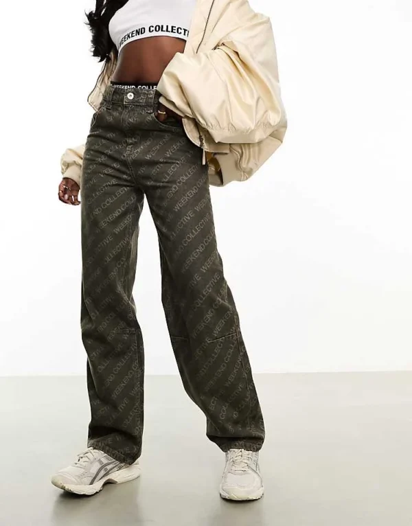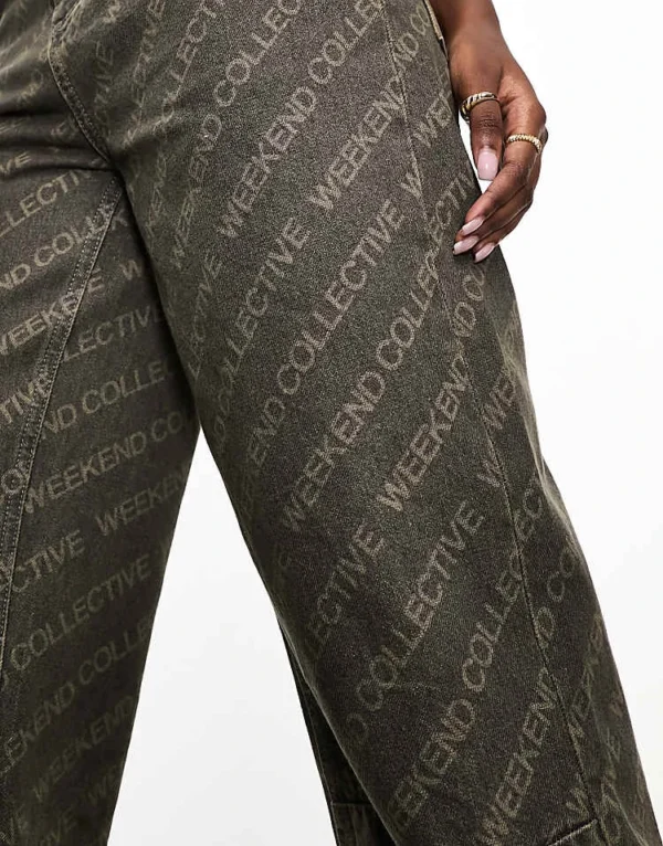 ASOS Weekend Collective Baggy Fit Jeans With Laser Print In Washed Brown For Women