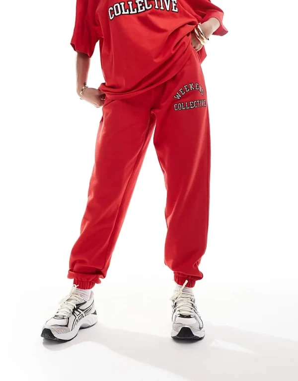 ASOS Weekend Collective Oversized Jogger With Varsity Logo In Red For Women