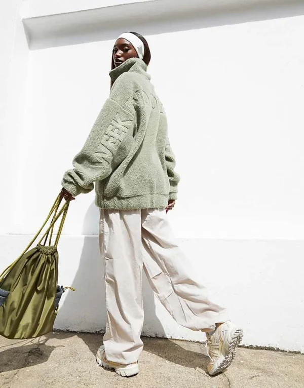 ASOS WEEKEND COLLECTIVE Weekend Collective Oversized Borg Half Zip With Burnout In Sage Green For Women