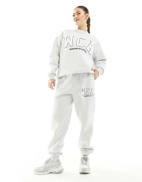 ASOS WEEKEND COLLECTIVE Weekend Collective Sweat With Varsity Logo In Grey Marl For Women