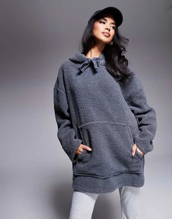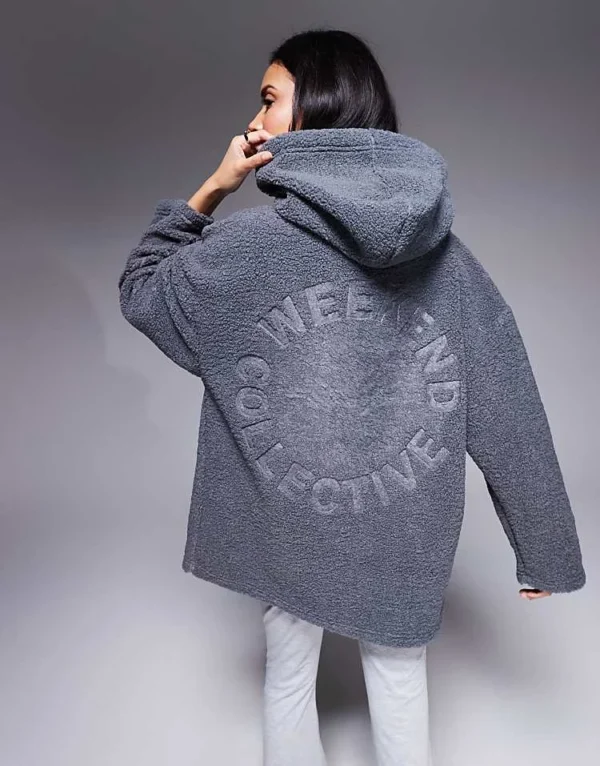 ASOS WEEKEND COLLECTIVE Weekend Collective Oversized Borg Hoodie In Grey For Women Grey Marl
