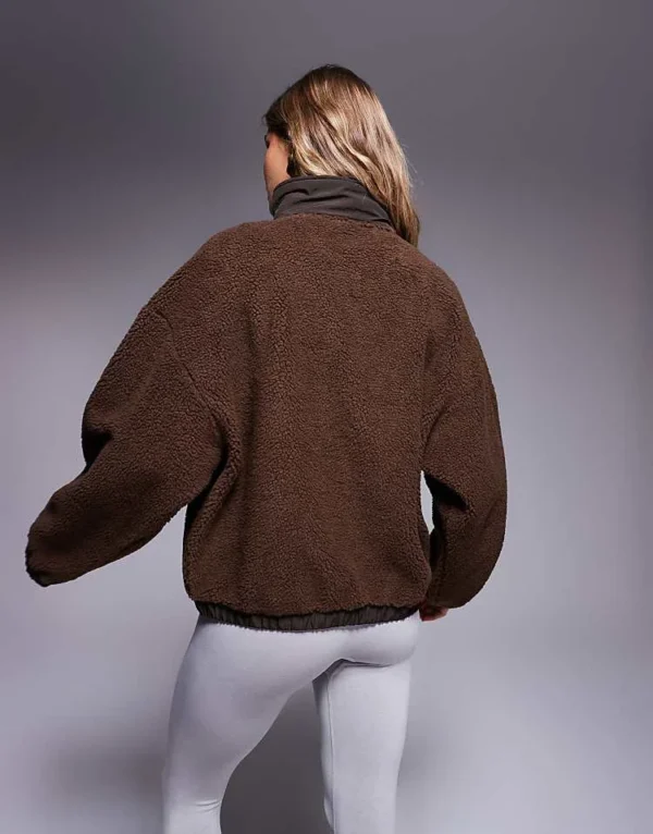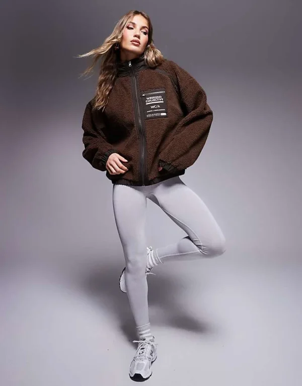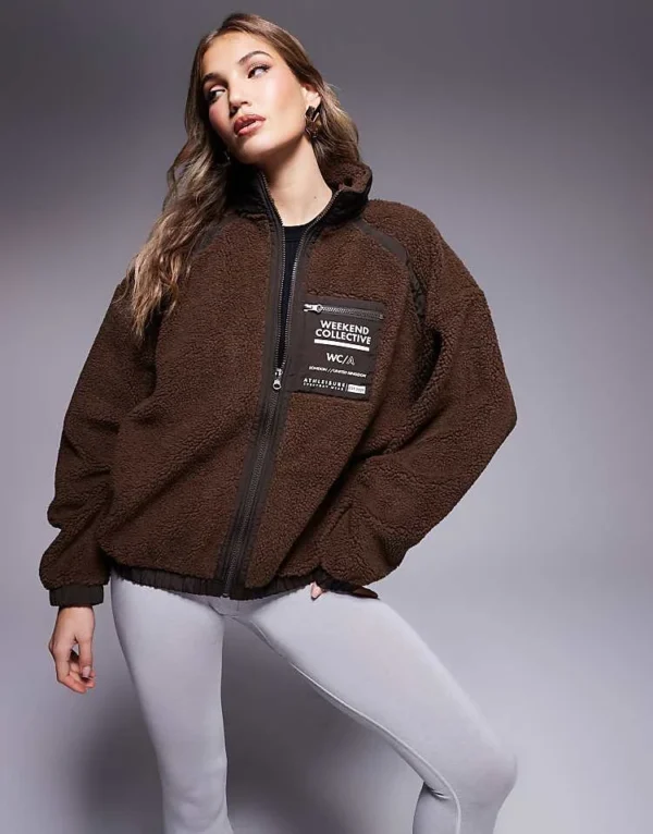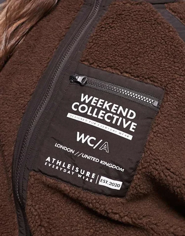 ASOS WEEKEND COLLECTIVE Weekend Collective Nylon Panel Borg Zip Through In Brown For Women Chocolate