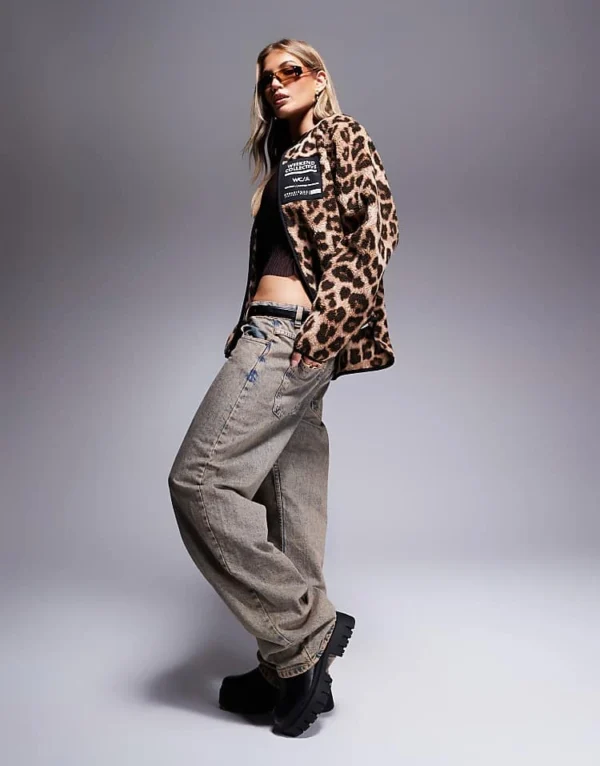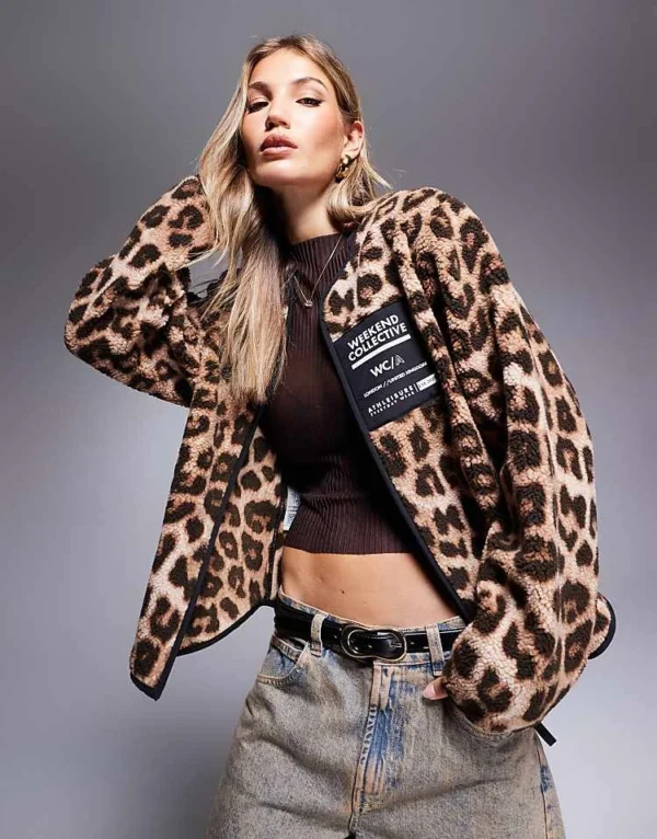 ASOS WEEKEND COLLECTIVE Weekend Collective Leopard Borg Zip Through For Women