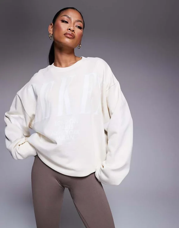 ASOS WEEKEND COLLECTIVE Weekend Collective Oversized Sweat With Stacked Logo In Cream For Women
