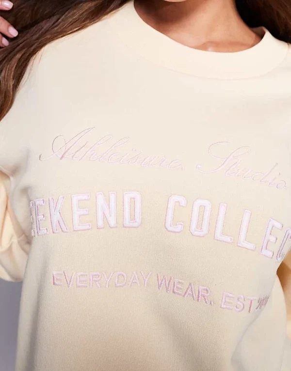 ASOS WEEKEND COLLECTIVE Weekend Collective Sweatshirt With Embroidered Logo In Buttermilk For Women