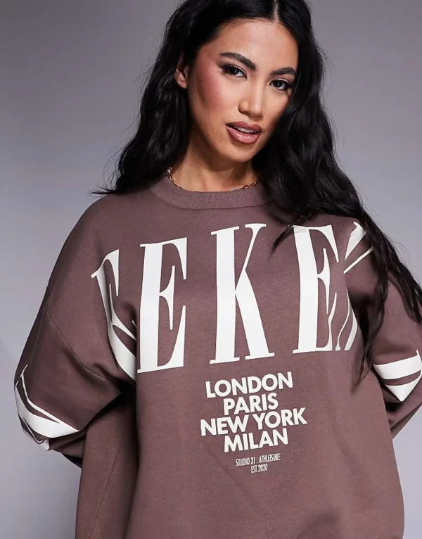 ASOS Weekend Collective Weekend Collective Oversized Sweat With Stacked Logo In Chocolate For Women Brown