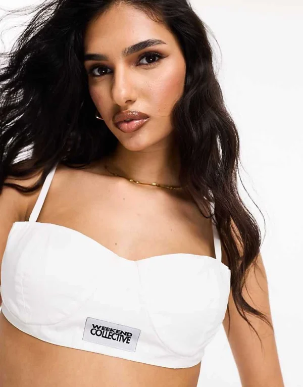 ASOS WEEKEND COLLECTIVE Weekend Collective Poplin Bralet With Woven Label In White For Women