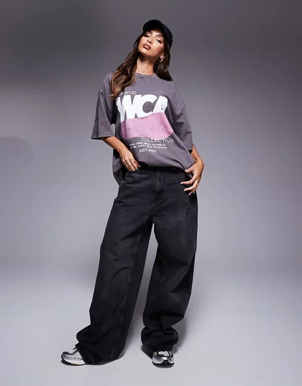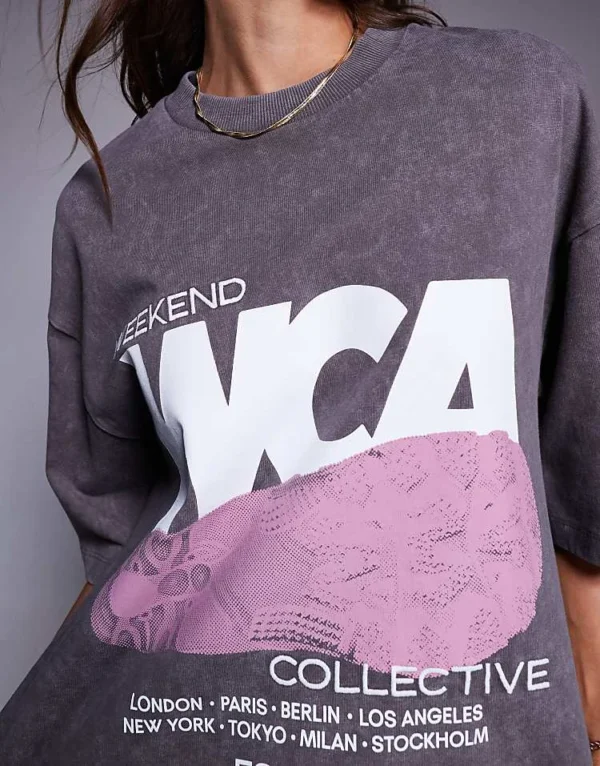 ASOS WEEKEND COLLECTIVE Weekend Collective T-shirt With Graphic Trainer Print In Washed Grey For Women