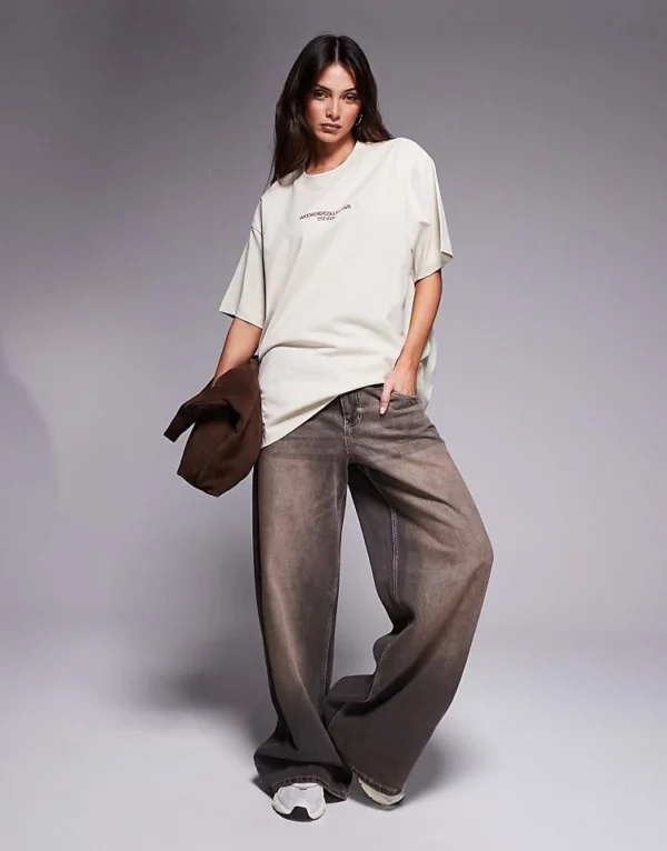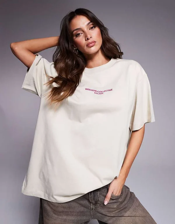 ASOS WEEKEND COLLECTIVE Weekend Collective Tshirt With Stacked Logo In Stone For Women