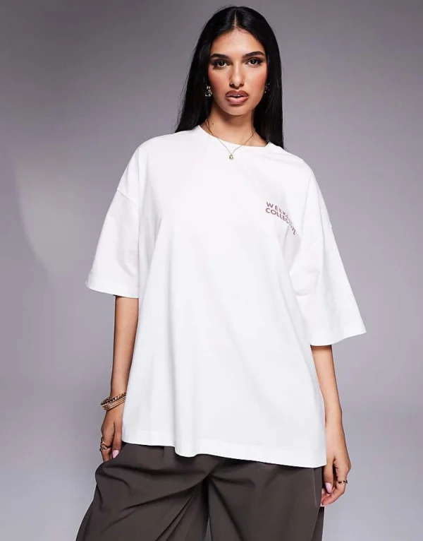 ASOS WEEKEND COLLECTIVE Weekend Collective Tshirt With Embroidered Scribble Graphic In Cream For Women