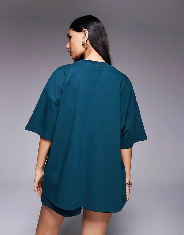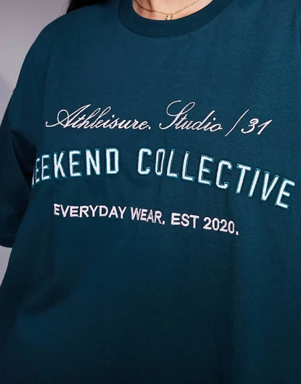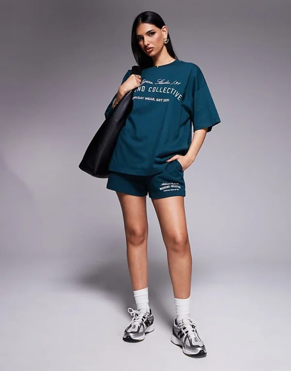 ASOS WEEKEND COLLECTIVE Weekend Collective T-shirt Co-ord With Embroidered Logo In Green For Women