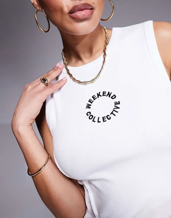 ASOS WEEKEND COLLECTIVE Weekend Collective Vest With Embroidered Circle Logo In White For Women Ecru