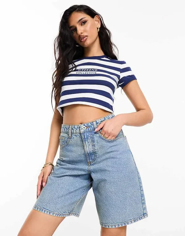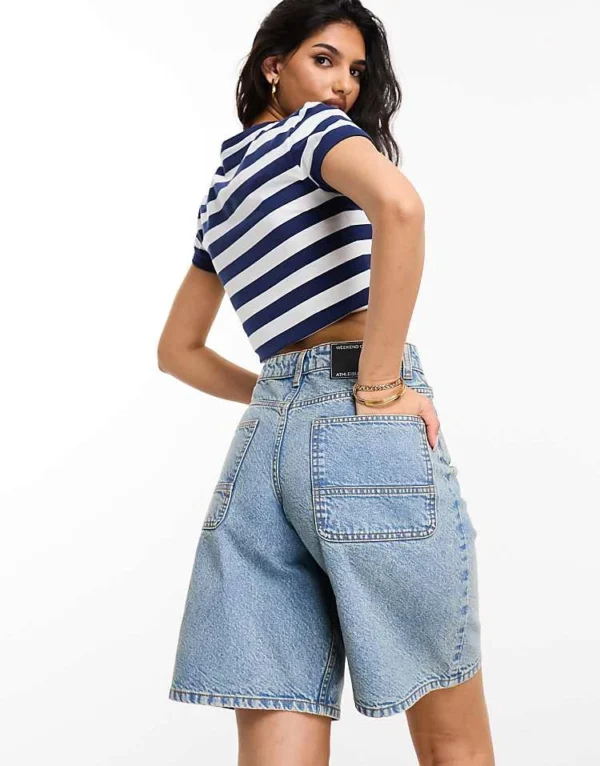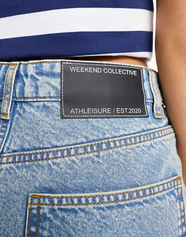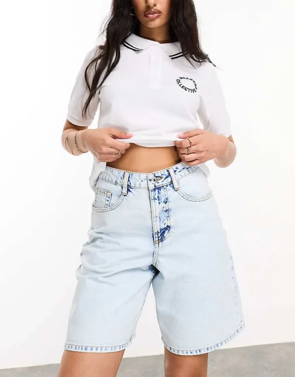 ASOS WEEKEND COLLECTIVE ASOS DESIGN Weekend Collective Longline Denim Shorts In Acid Blue Wash For Women