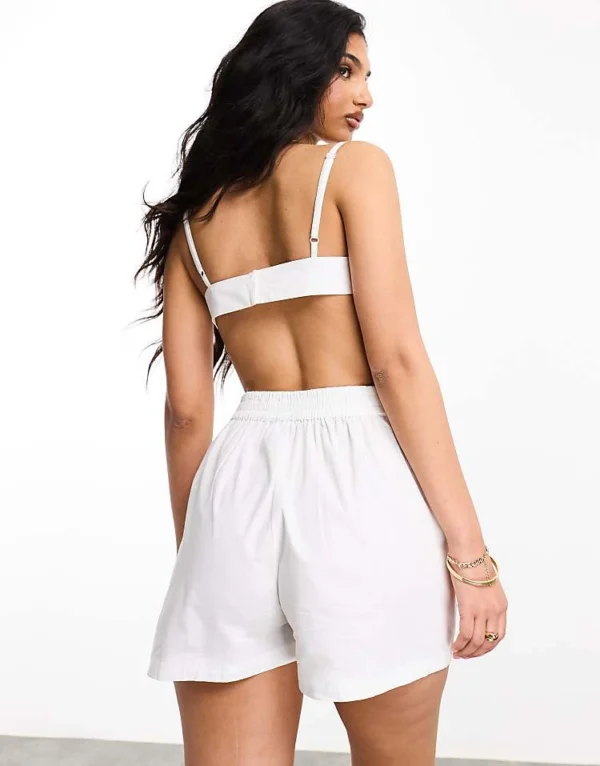 ASOS WEEKEND COLLECTIVE ASOS DESIGN Weekend Collective Shorts With Woven Label In White For Women