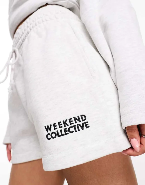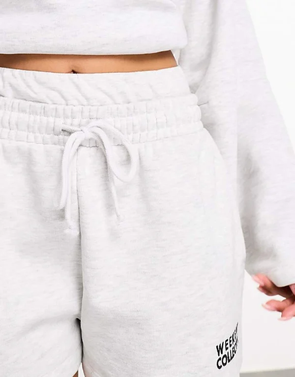 ASOS WEEKEND COLLECTIVE Weekend Collective Faux Waistband Logo Jogger Shorts In Grey Marl For Women