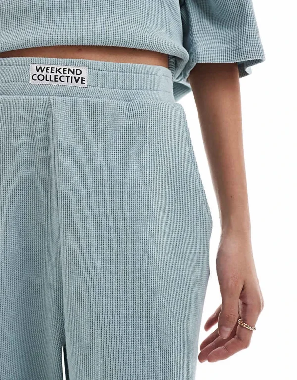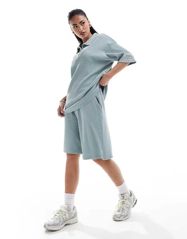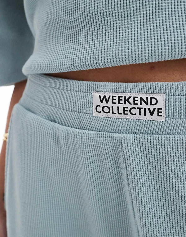 ASOS WEEKEND COLLECTIVE ASOS DESIGN Weekend Collective Waffle Long Short In Blue Co-ord For Women