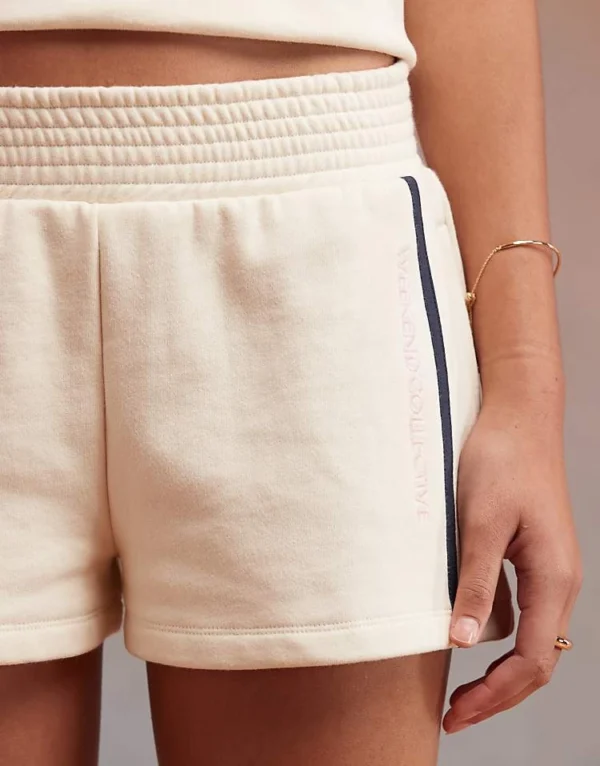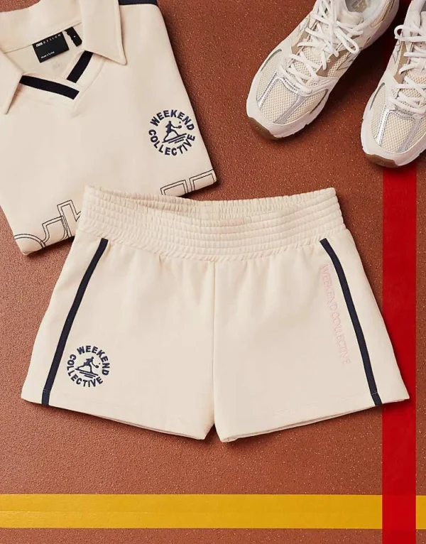 ASOS WEEKEND COLLECTIVE Weekend Collective Co-ord Heavyweight Jersey Embroidered Shorts With Graphic In Buttermilk For Women